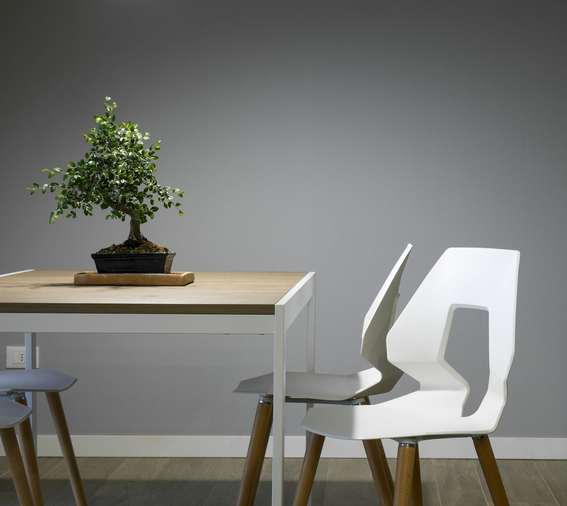 - Massive møbler som sofabord, hyller eller spisebord i tre skaper tyngde og stabilitet.